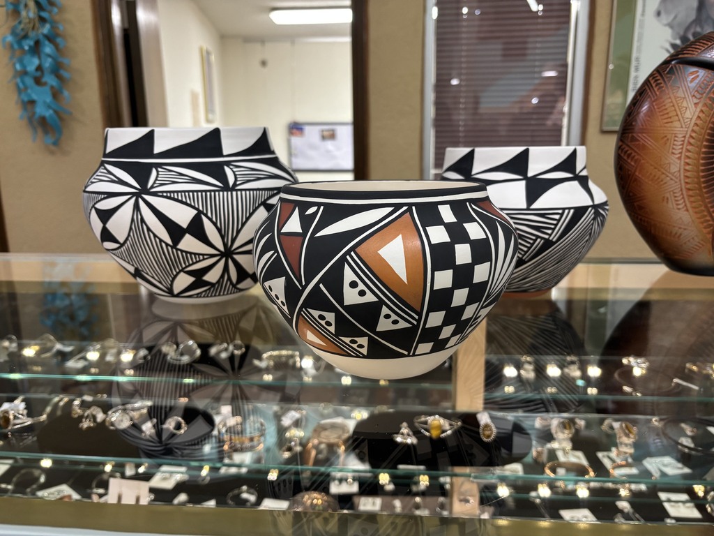 Bien Mur’s kiva-shaped showroom displays jewelry, pottery, woven rugs, sand paintings, fetishes and folk art, all made by Indigenous creators whose techniques have been passed down through generations. The market also supports a 107-acre bison preserve, reflecting cultural values of respect for the land and for animals that hold sacred meaning for many Native Nations.