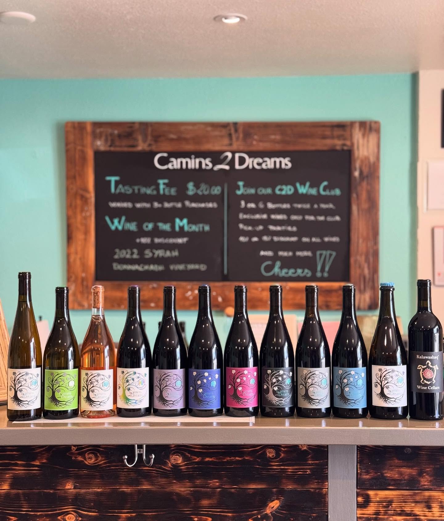 Wine Tasting - Experience the world of Camins 2 Dreams with a tasting of 5 wines. Tasting fees are $20 per person, but each tasting fee is waived with a purchase of 3 bottles. We offer a selection of snacks for purchase but outside food is also welcome. Well-behaved dogs on a leash are welcome.