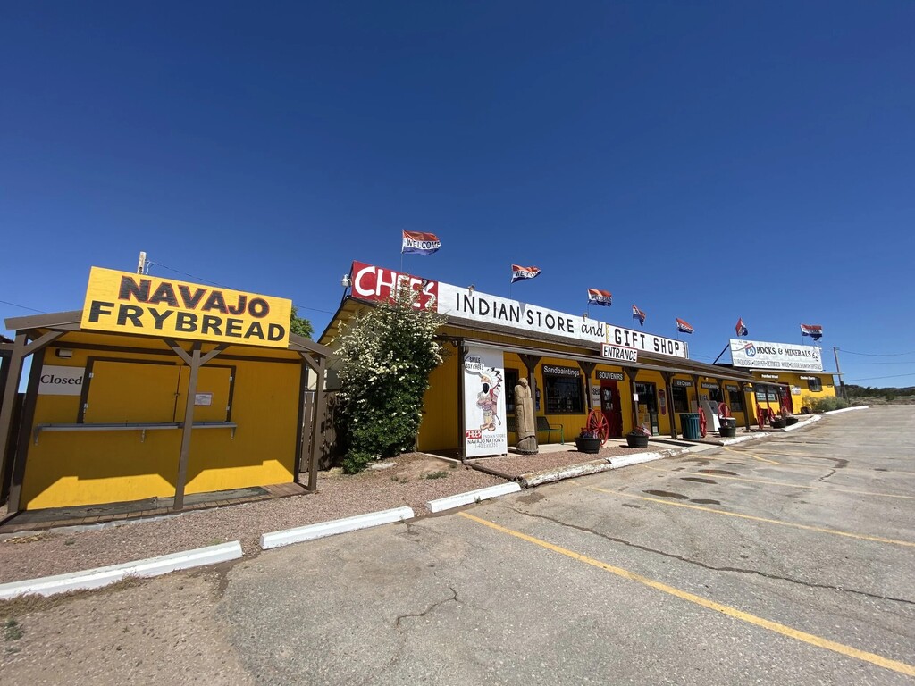 Located along historic U.S. Route 66 on the Navajo Nation in northeastern Arizona, 7 miles from the Arizona/ New Mexico border, Chee’s Indian Store is a longtime family-owned destination celebrating Diné (Navajo) culture and craftsmanship. Established in 1948 by the Chee family—whose name means “red” in the Navajo language—the store began as an outdoor stand showcasing handwoven rugs and jewelry created by Diné artisans.