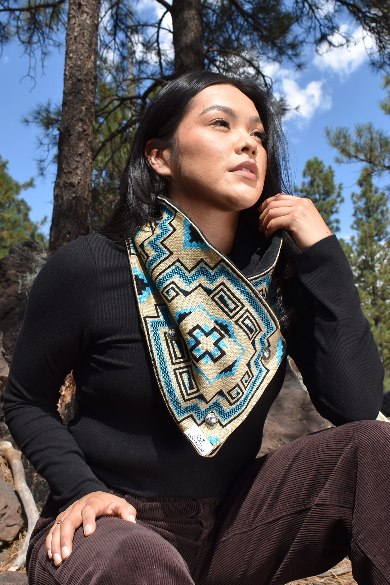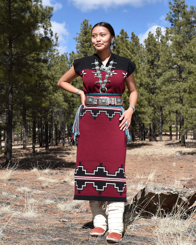 Located near historic U.S. Route 66 in Flagstaff, Arizona, Hool’áágóó is a Native-owned business celebrating Diné (Navajo) weaving traditions through contemporary apparel and textiles. The name Hool’áágóó, meaning “forever” or “infinity” in the Diné language, reflects the enduring influence of Navajo culture and artistry.