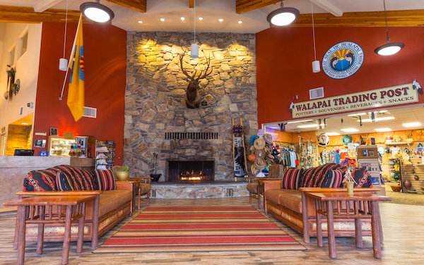 Hualapai Lodge is located on historic Route 66 in Peach, Springs Arizona. Upon entering the lobby, you will experience Hualapai culture and a warm, welcoming large river-rock fireplace.