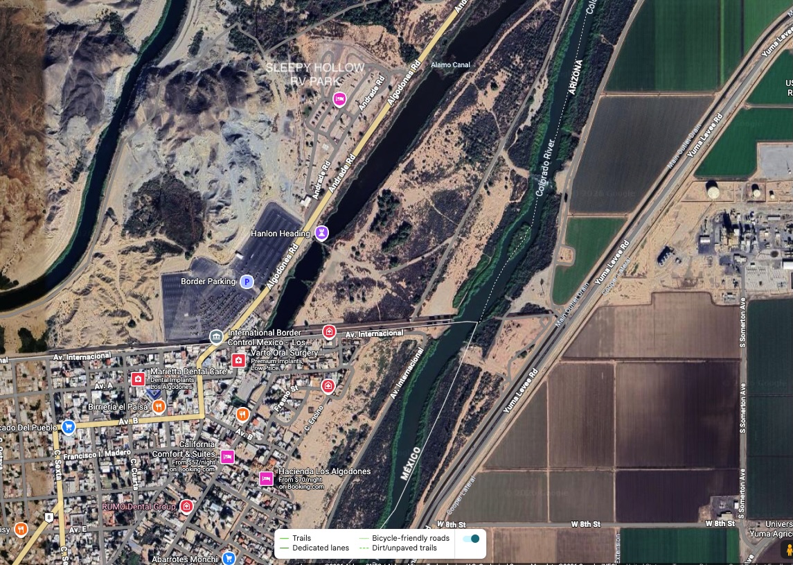 You’re perfectly positioned for an easy day trip. Simply drive 2 minutes south to the Andrade border crossing – one of the most convenient and least crowded crossings along the US-Mexico border. Park in the secure lots on the US side (just $5 for the day), then walk across the border into Los Algodones.