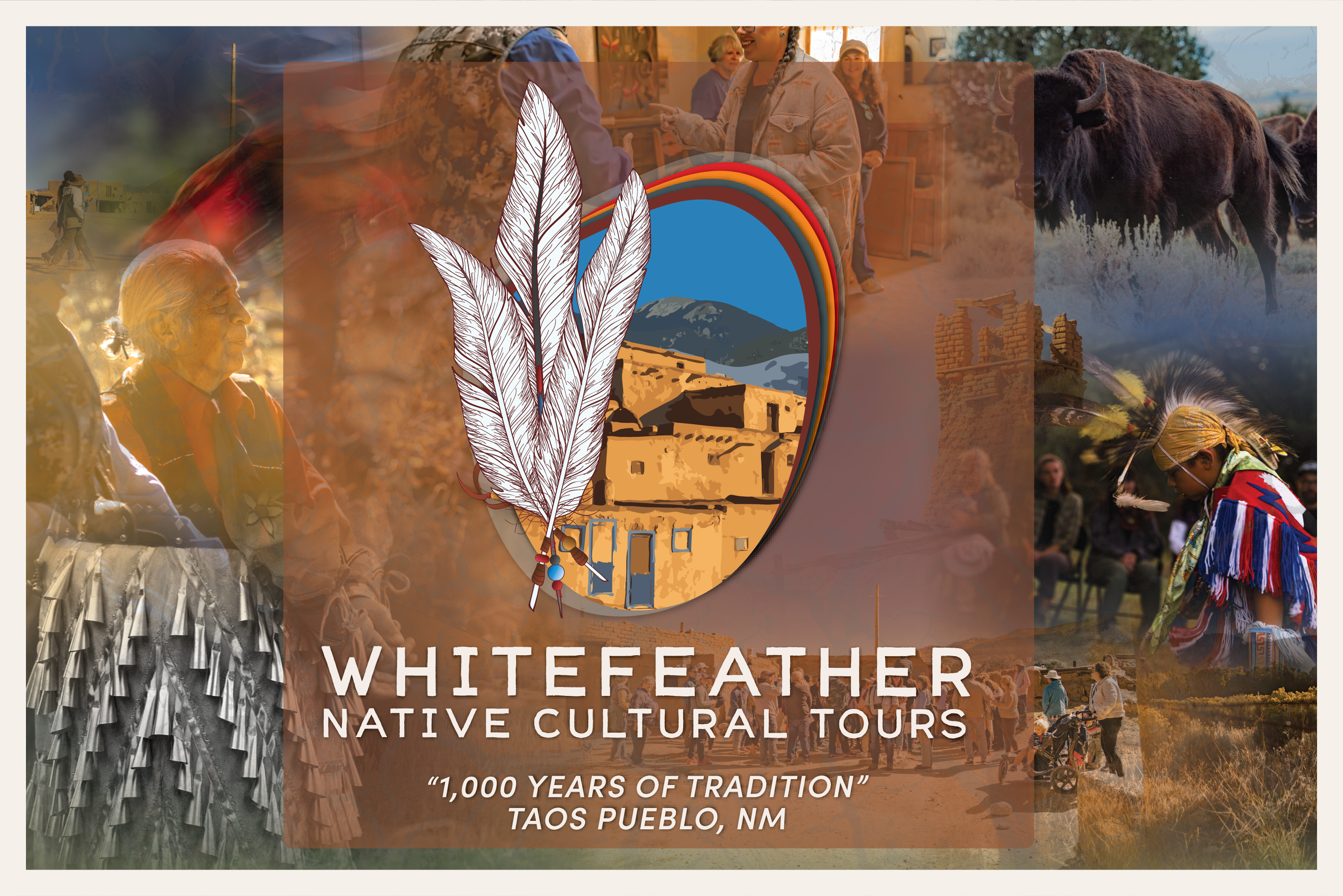 In the heart of Northern New Mexico, where Taos Mountain rises in quiet majesty and the Red Willow River weaves through the high desert, the spirit of Taos Pueblo endures. Whitefeather Native Cultural Tours invites you to step into that living rhythm — to walk the ancestral lands, listen to the songs of the people, and experience a way of life that has flourished for over a thousand years.